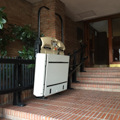 En esta instalación hemos montado una V65, para poder salvar unos pocos escalones que dan acceso al a la zona del ascensor, en un tramo recto de escalera con rellanos intermedios.