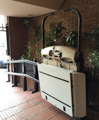 Este aparato hace una curva cerrada para su aparcamiento, quedado al nivel de la calle y cuando está en reposo se pliega sobre si misma ocupando el mínimo espacio y así, no interrumpir el paso al resto de viandantes.
